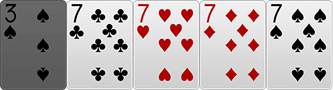 - 같은 숫자가 3장, 2장씩 짝을 지은 경우, 3장 쪽의 카드로 이름을 부릅니다. (예 : 7-7-7-J-J 라면 '7 풀하우스')