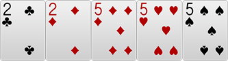 - 서로 풀하우스일 경우 높은 풀하우스 (3장 있는 카드의 숫자가 높은 풀하우스)가 승리합니다.