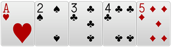 - J, Q, K, A, 2 처럼 A가 중간에 낀 경우는 스트레이트로 인정되지 않습니다.