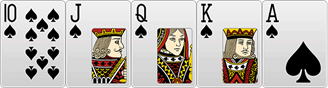 - 5장의 카드가 모두 무늬가 같으며, 10, J, Q, K, A 인 경우